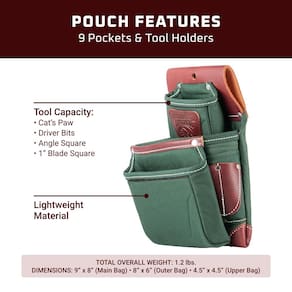 - Bolsa de ferramentas Oxylights com 3 bolsas: esta é a nossa bolsa de fixação OxyLights mais popular, construída para moldura e carpintaria em geral. O layout de 3 bolsas inclui bolsas principais, externas e superiores para acesso organizado.