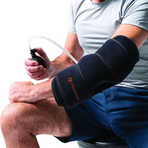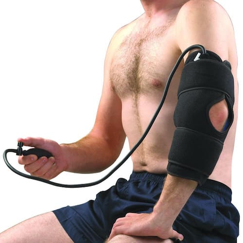 Bolsa de gelo com compressão para cotovelo - longevitech Tamanho: único Bolsa de gelo com compressão para cotovelo longevitech A bolsa de gelo com compressão para cotovelo longevitech foi cuidadosamente desenvolvida para otimizar o processo de recuperação e alívio da dor, pois combina a crioterapia terapia com frio e compressoterapia através de um sistema de compressão , que melhora a circulação sanguínea. Essa bolsa foi projetada especificamente para se adaptar perfeitamente à região dos cotovelos proporcionando um tratamento altamente direcionado e eficaz. A bolsa de gelo com compressão para cotovelo possui um design voltado para que seja aplicado nas articulações proporcionando conforto durante o seu uso. É um produto versátil e ergonômico que pode ser utilizado em diversas situações e em diversos lugares, não impedindo que suas atividades diárias sejam afetadas. Possui tamanho único e seu uso é bilateral, serve tanto para o lado direito quanto para o lado esquerdo. Instruções de uso: