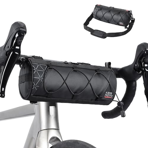 KEMIMOTO Bolsa de guidão de bicicleta com capa de chuva à prova d'água, bolsa de bicicleta frontal para bicicletas, zíperes duplos resistentes à água para mountain road bike, bolsa de ombro para ciclismo, acessórios profissionais de bicicleta - Armazenamento de fácil acesso, leve e inteligente com esta bolsa de guidão de 2,4 L — ideal para manter seus itens essenciais como smartphones, carteiras, chaves e ferramentas de bicicleta ao alcance fácil. Dimensões: 25 x 10 cm (diâmetro) - Proteção resistente à água, vem com uma capa de chuva. A bolsa de bicicleta KEIMIMOTO possui zíperes duplos SBS resistentes à água. Feita de tecido Oxford 600D durável e resistente ao desgaste e filme de PVC para manter seus pertences secos na chuva - Fácil de instalar e remover, prenda esta bolsa à sua bicicleta sem esforço com três tiras antiderrapantes ajustáveis projetadas para instalação e remoção rápidas. A alça de ombro bônus instantaneamente a transforma em uma mochila prática para aventuras a pé - Maior segurança noturna, mantenha-se seguro ao andar ao anoitecer com tiras refletivas em ambos os lados da bolsa que melhoram sua visibilidade. Pedal com tranquilidade sabendo que você é mais visível para os outros à noite - Cabe na maioria das bicicletas, esta bolsa de bicicleta pode caber na maioria das bicicletas — estrada, montanha ou bicicleta dobrável. Acessório essencial para viagens diárias, passeios de lazer, excursões ao ar livre ou viagens de negócios