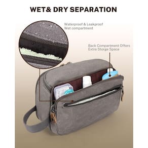 Descubra Gonex melhor companhia de viagem em uma bolsa de higiene masculina de lona! Feita de lona durável e resistente à água, esta bolsa de higiene de viagem combina estilo com funcionalidade. Seu tamanho prático oferece amplo espaço de armazenamento sem ser volumoso, tornando-o perfeito para viagens ou uso diário. Versátil e multifuncional, funciona como uma bolsa de maquiagem, kit de cuidados com a pele ou organizador de tecnologia. Mantenha-se organizado em movimento com o compartimento de separação úmido-seco e design de faixa elástica, mantendo seus itens seguros e arrumados. Equipado com um zíper forte, seus itens essenciais são seguros e facilmente acessíveis. Seja você um viajante frequente ou entusiasta da academia, esta bolsa de higiene pessoal é essencial. Atualize seus acessórios de viagem com nossa bolsa de higiene de lona elegante e prática hoje. - Materiais premium: Feita de lona durável resistente à água, nossa bolsa de higiene masculina é feita para durar, garantindo uso a longo prazo sem desgaste. Equipado com zíperes duráveis com puxador de zíper de couro confortável, garante um fechamento seguro e acesso confortável aos seus produtos de higiene pessoal. - Tamanho prático: projetada com a conveniência em mente, esta bolsa de higiene de viagem possui as dimensões perfeitas (26 cm C x 10 cm L x 17 cm A) para facilitar a embalagem e portabilidade sem sacrificar o espaço de armazenamento durante viagens ou uso diário. - Três compartimentos organizados: o compartimento principal grande é projetado para armazenar itens maiores, como xampu ou loções. Há um bolso de separação úmido-seco na parte de trás que mantém seus itens molhados separados. Compartimentos traseiros e frontais com bolso de malha elástica e faixas mantêm suas lâminas de barbear e escovas de dentes arrumadas. - Design de faixa elástica: possui faixas elásticas para fixar os itens no lugar, evitando derramamentos e mantendo seus itens essenciais bem organizados com nossa bolsa de barbear. - Multifuncionalidade: versátil e adaptável, este kit dopp também pode funcionar como um organizador eletrônico de viagem, bolsa de maquiagem, kit de cuidados com a pele ou kit de costura, atendendo a todas as suas necessidades em movimento.