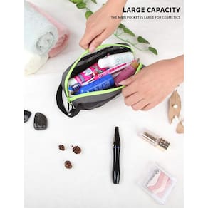Material: 100% nylon ultraleve. Tamanho: 7,9 x 3,7 x 2 polegadas para tamanho pequeno e 9,8* 3,7* 4,3 polegadas para tamanho grande. Fechamento: zíper de armário YKK. Descrição do produto: A bolsa central do compartimento principal se abre com uma bolsa com zíper à prova d'água de um lado e do outro lado foi dividida em 2 bolsas de malha elástica; na parte externa, há uma bolsa com zíper para guardar itens pequenos e uma alça forte para pendurar, se necessário. 4 cores atraentes: preto.turquesa. verde e laranja. - MULTIUSO PARA VIAGENS OU GINÁSTICA: A bolsa de higiene pessoal GOX é feita para embalar xampu ou gel de banho. Portanto, quando estamos viajando ou praticando esportes, é uma bolsa perfeita para todos os nossos pertences. É fácil pendurá-lo nos banheiros. - MUITOS BOLSOS: Para tornar as coisas bem organizadas, projetamos muitos bolsos para artigos de partição. O compartimento principal é grande o suficiente para garrafas. De um lado, uma bolsa central se abre com uma bolsa com zíper impermeável com membranas. E no outro lado foi dividido em 2 bolsas de malha elástica. Também há uma bolsa com zíper para guardar pequenos itens do lado de fora, na parte de trás da bolsa. - MATERIAL DURÁVEL ATUALIZADO: Esta bolsa de higiene da GOX é feita de material de nylon Ripstop de alta qualidade, que é ecológico. O material é 70D, que é ultraleve, antiderrapante, à prova de poeira e à prova d'água. A bolsa é carregada com zíper YKK para ser durável e suave. - SUSPENSAS PARA FACILITAR O ACESSO: O gancho suspenso permite pendurar a bolsa na porta do banheiro, no chuveiro ou no toalheiro para acesso rápido aos produtos de higiene pessoal, além de simplesmente guardar sua maleta de viagem quando não for necessário. A bolsa organizadora de viagem impermeável GOX TRAVEL tem dois tamanhos para escolha: 7,9"x3,7"x2" para pequenas; 3,3"x9,8"x4,3" para grandes. ESTE ITEM NÃO SE DESTINA AO USO POR CRIANÇAS DE 12 ANOS OU MENOS. - O QUE VOCÊ RECEBERÁ: Uma bolsa de higiene pessoal GOX Premium e garantia de alta qualidade, juntamente com nosso simpático atendimento ao cliente. Se por algum motivo você não gostar da bolsa, informe-nos primeiro. Faremos tudo para atender às suas necessidades: reembolso ou substituição. Tenha certeza de que nosso único objetivo é deixá-lo 100% satisfeito.