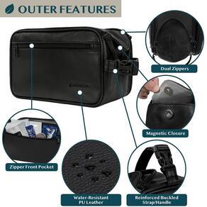 - Bolsa de higiene masculina: esta bolsa de viagem funcional de couro PU tem um grande compartimento e bolsos laterais com bolsos adicionais para guardar todos os seus acessórios de higiene pessoal, barbear e cuidados pessoais. Equipado com elásticos e bolsos de malha adicionais para manter seus itens de higiene seguros durante viagens ou em casa, este estojo de maquiagem cosmética ajudará você a se manter organizado.