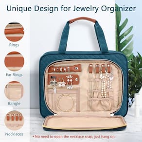 - Compartimento extra de joias: a bolsa de viagem de higiene Wedama é projetada com compartimento organizador de joias. É mais do que uma bolsa de higiene, mas também um organizador de joias. Adicionamos compartimento no bolso frontal da bolsa de viagem para anéis, anéis de orelha, pulseira, colar e outras joias, atendendo às suas necessidades de higiene pessoal e maquiagem. Lembre-se de que não há necessidade de abrir o colar, basta pendurar em seus colares.