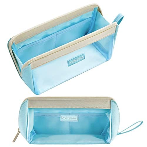 Estojo de lápis estético transparente YOKUMA para meninas, lindo estojo de caneta Kawaii Mark, de grande capacidade para crianças, adolescentes, estudantes universitários e adultos, bolsa de maquiagem, material de volta às aulas (azul celeste)