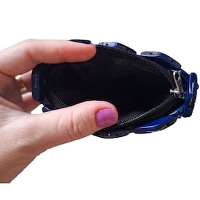 Bolsa de Madeira, tipo Carteira, Porta-Moedas, Azul, com Zíper