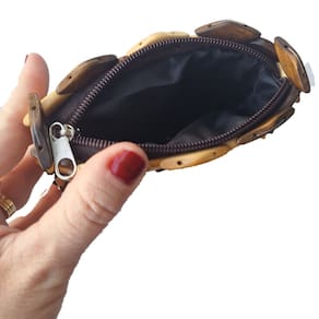 Bolsa de Madeira, tipo Carteira, Porta-Moedas, Marrom-Marfim, com Zíper