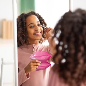 Com um design encantador e super moderno, essa bolsa vem com tudo o que as meninas precisam para brincar de maquiagem com seguranca e criatividade.