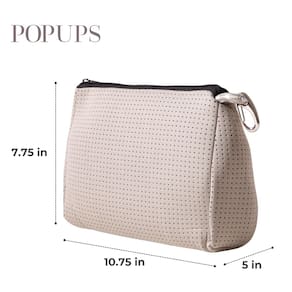 Atualize sua experiência de viagem com a bolsa de maquiagem grande POPUPS com zíper, projetada como uma boa bolsa multifuncional para mulheres e homens. Seu material de neoprene 100% luxuoso à prova d'água, livre de manchas e respirável garante que seus pertences permaneçam protegidos, enquanto o zíper durável mantém tudo seguro. Esta bolsa de viagem versátil para homens e mulheres vem em uma variedade de estampas e cores exclusivas, tornando-a o essencial de viagem ideal para todos. Medindo 19,6 x 27,3 x 12,7 cm, é espaçoso o suficiente para caber todos os seus itens essenciais de viagem para mulheres e homens, mas dobrável para economizar espaço quando necessário.