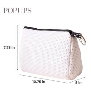 Atualize sua experiência de viagem com a bolsa de maquiagem grande POPUPS com zíper, projetada como uma boa bolsa multifuncional para mulheres e homens. Seu material de neoprene 100% luxuoso à prova d'água, livre de manchas e respirável garante que seus pertences permaneçam protegidos, enquanto o zíper durável mantém tudo seguro. Esta bolsa de viagem versátil para homens e mulheres vem em uma variedade de estampas e cores exclusivas, tornando-a o essencial de viagem ideal para todos. Medindo 19,6 x 27,3 x 12,7 cm, é espaçoso o suficiente para caber todos os seus itens essenciais de viagem para mulheres e homens, mas dobrável para economizar espaço quando necessário.