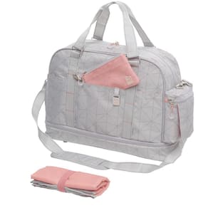 Bolsa de maternidade com extensor, bolso lateral térmico, porta lenço umedecido, bolso para roupa molhada, trocador, alça para prender no carrinho e etiquetas personalizadas.