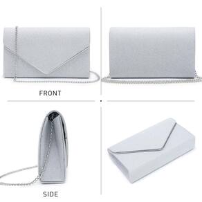 DASEIN Bolsa elegante para noite. Esta bolsa de mão brilhante estilo envelope para noite é fosca com flocos brilhantes que farão você brilhar durante sua ocasião especial. Combine isso com o seu vestido perfeito, coloque o essencial para uma noite glamorosa. O interior pode caber facilmente em um celular, carteira, espelho compacto, brilho labial e um pacote de chiclete. Convenientemente, você pode passar a noite com as mãos livres com a corrente removível incluída. - Dasein elegante bolsa de noite fosca com glitter / bolsa de festa para mulheres, com várias opções de cores. - Corpo brilhante de alta qualidade emoldurado por ferragens prateadas com alça de corrente dourada removível. - O interior de tecido macio com bolso superior caberá no seu telefone, dinheiro e outros itens essenciais pequenos. - Design dobrável na frente com fecho magnético para fácil acesso ao conteúdo armazenado. - Aprox. Tamanho: 21 cm L x 12 cm A x 5 cm P. Cabe facilmente no iPhone 8 Plus, X, XS Max.