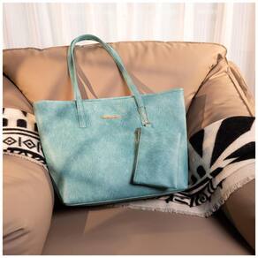 Bolsa de Ombro Feminina em Couro Sintético com Carteira, Montana, Azul - Branco - Regulável