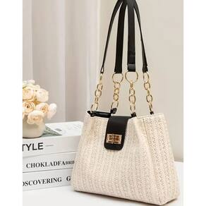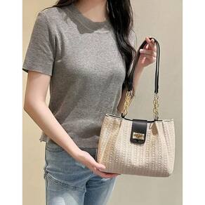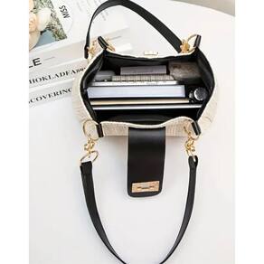 Linda bolsa de palha com forro de poliéster, alças de ombro fixas, padrão acolchoado e fecho dourado kiss lock, estilo vintage popularizado no começo do século 20, que consiste em um fecho metálico com duas hastes de pontas arredondadas. A moda boho chic é conhecida por sua mistura eclética de elementos étnicos, vintage e contemporâneos, criando um visual despojado e sofisticado. As bolsas de palha são um acessório perfeito para complementar esse estilo, oferecendo um toque natural e artesanal que é ao mesmo tempo elegante e casual. A bolsa de palha é um acessório extremamente versátil. Pode ser combinada com vestidos leves, jeans e camiseta, ou até mesmo com um look mais sofisticado. Um dos segredos é apostar em peças que ressaltem a naturalidade do material, como roupas de linho e algodão. Dimensões: 24 cm de largura, 19 cm de altura (sem a alça) e 1 0cm de profundidade. Cuidados e Manutenção Para garantir a durabilidade da sua bolsa de palha, alguns cuidados são essenciais: Armazenamento: Guarde a bolsa em locais secos para evitar que a umidade danifique o material. Limpeza: Limpe com um pano úmido e evite o uso de produtos químicos agressivos. Proteção: Evite o contato direto com a água e a exposição prolongada ao sol, que pode desbotar as cores.