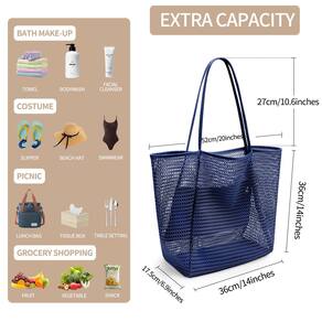 - Bom material: a malha da bolsa de praia é feita de material sólido de poliéster, durável, elástico e antidesgaste, pode prolongar a vida útil.