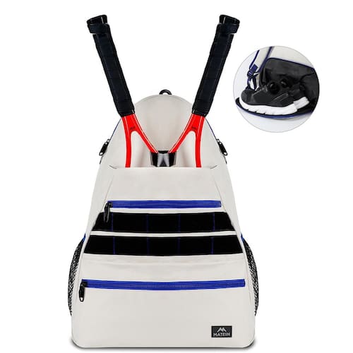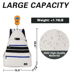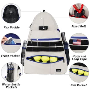 " 1. Tamanho das bolsas A bolsa principal: 43 x 23 x 52 cm (C x L x A) 2. Compartimento principal Um compartimento principal é espaçoso o suficiente para guardar moletons, pulseiras, toalhas, etc; Existem dois bolsos no compartimento principal, que são muito adequados para acessórios, lanches, telefones celulares, chaves, etc; Há um design especial de chaveiro no compartimento principal, que é fácil de carregar sua chave; 3. Bolsa para raquete de tênis Duas raquetes de tênis de 68,5 cm podem ser colocadas, e o cinto de fixação pode ser utilizado para consertar as raquetes de tênis; 4. Bolso para bola de tênis. Pode acomodar de 8 a 10 bolas de tênis padrão; 5. Bolso pessoal com zíper Itens pessoais como livros, fones de ouvido podem ser colocados; 6. Bolso lateral de malha. Bolsas laterais de malha em ambos os lados da mochila, com faixas elásticas na parte superior, podem fixar firmemente a chaleira esportiva, com alta segurança; 7. Fita de fecho aderente A fita de fecho aderente na superfície da mochila pode ser colada com seus adesivos personalizados favoritos; 8. Bolso antifurto oculto tipo zíper O bolso oculto antirroubo na parte de trás da mochila protege seus pertences de ladrões; 9. Sala de sapatos independente Separe o compartimento com zíper com duas saídas de ar para separar seu sapato sobressalente do compartimento principal. Não se preocupe com roupas limpas ou bolsas sujas. É mais conveniente colocar e tirar sapatos. 10. Gancho forte e alças de ombro ajustáveis O gancho pode pendurar livremente a mochila de tênis na parede ou cerca, o que é limpo e prático; equipado com alças de ombro acolchoadas ajustáveis simples, homens e mulheres podem carregar confortavelmente; 11. Material: Feito de material de nylon 300D de alta densidade, tecido esportivo , design unissex leve e compacto, sensação sedosa, forte e de alta qualidade; 13. A melhor escolha para presentes Presente perfeito para amigos, marido, filho, amigo, filha, colega de classe e você mesmo." - Bolso fixável para raquetes de tênis: 40 cm L x 19 cm P x 53 cm A. Com design de corda de fixação, a mochila de tênis oferece às suas raquetes um estado mais estável durante a caminhada. O compartimento espaçoso pode acomodar duas raquetes de tênis de 68 cm, raquetes de badminton ou outros acessórios esportivos - Muitos bolsos e espaço: o bolso de bola pode conter 10 bolas de tênis. O bolso frontal é adequado para notebook. Compartimento principal com bolso de malha e gancho para chaveiro, torna seus itens organizados e mais fáceis de encontrar. Bolso antirroubo escondido na parte de trás evita que objetos de valor sejam roubados - Compartimento respirável para sapatos: o compartimento separado para sapatos afasta os sapatos sujos das coisas pessoais. O recurso dobrável oferece mais maneiras de armazenar seus itens. Dois orifícios ventilados melhoram a circulação de ar e dispersam o mau cheiro. É uma ótima bolsa de tênis para mulheres e homens, também uma boa bolsa de equipamento para adultos - Confortável e característica: a alça de ombro ventilada com vários painéis alivia o desconforto do ombro. Duas fileiras de fita de fecho aderente permitem que você mostre mais personalidade. O gancho nas costas libera suas mãos e mantém sua mochila limpa do chão - Material de alta qualidade e resistente à água: esta mochila para tênis é feita de poliéster resistente à água e 300 D de alta qualidade com zíperes de metal. Garanta o uso seguro e duradouro todos os dias. Presentes ideais para homens, presentes para mulheres, presentes para entusiastas de tênis, presentes de tênis para homens, presentes de Natal, presentes de aniversário para pais