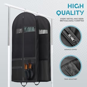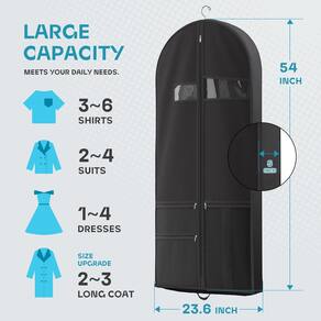 Lazebox Bolsa de vestuário - Conveniente e fácil de transportar: Leve e dobrável, esta bolsa cabe facilmente na sua bagagem ou pode ser transportada sozinha. - Material premium: a bolsa de vestuário Lazebox é resistente a rasgos, sem poeira, reutilizável e respirável com zíper de alta qualidade. O tamanho é 137 cm C x 60 cm L x 12 cm P, o que pode atender às necessidades da vida diária. - Multifunções: a bolsa de vestuário leve é perfeita para proteger ternos, blusas, jaquetas, vestidos, peles e smoking durante viagens em aviões ou carros. Também pode ser pendurado no armário para manter as roupas organizadas. - Com alças de transporte: a bolsa de viagem pode ser dobrada em uma sacola para facilitar a portabilidade. Alças de tecido resistente em ambas as extremidades permitem que você transporte a bolsa sem arrastar seu casaco inteiro no chão. - Janela e bolso transparentes: a janela de PVC transparente permite fácil identificação dos itens dentro. A bolsa de vestuário possui 3 bolsos extragrandes para acessórios ou sapatos. O bolso para identificação de PVC permite a etiquetagem.