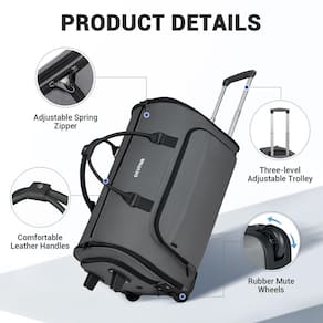 DEVPNR Sacos de roupa com rodinhas para viagem, bolsa de viagem 59L com rodas e compartimento de sapatos para homens e mulheres, bolsa de viagem conversível 3 em 1 com rodas, cinza - ?Bolsa de roupa com rodinhas 3 em 1 e bolsa de mão?A bolsa dobrável Devpnr possui uma alça de couro confortável, uma alça telescópica ajustável de dois níveis que pode ser ajustada até 107 cm e uma alça de cabo. Alterna facilmente entre 3 modos de transporte: portátil, rolando com alça e colocando-a em cima de uma mala de mão. Atenderá às suas diferentes necessidades e facilitará o check-in para viagens aéreas. É uma seleção confiável para viagens de negócios e escapadelas de fim de semana