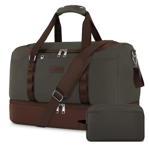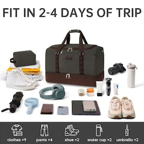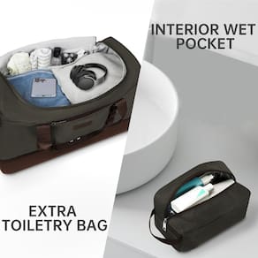 Bolsa esportiva masculina - Grande capacidade e leve: a bolsa esportiva tem 52,8 x 23 x 34,3 cm, a capacidade é de cerca de 42 L, pode caber em viagens curtas de 2 a 4 dias de itens essenciais diários. A bolsa de viagem é feita de tecido resistente à água de alta qualidade e leve. Pesa apenas 800 g, conveniente para viagens e transporte. - Separação seca e úmida: a bolsa de ginástica com um bolso forrado de PVC à prova d'água com zíper para roupas molhadas ou toalhas e roupa de banho, pode efetivamente manter a bolsa limpa e não se molhar. E a bolsa de higiene pessoal pode colocar em seus produtos de higiene pessoal, cosméticos, lâminas etc. Fácil de armazenar e organizar. - Compartimento separado para sapatos: a bolsa de fim de semana tem uma cabine de sapatos independente, que pode acomodar 2 pares de sapatos masculinos ou roupas sujas e as saídas de ar para dispersar o mau cheiro. Pode ajudar você a evitar a sujeira de outras roupas ao fazer a mala, além de proporcionar mais conveniência para sua viagem. - Design adequado para viagens: a bolsa de mão está perfeitamente alinhada com os regulamentos de voo e requisitos de bagagem de mão das principais companhias aéreas. Pode ser colocada na cabine aérea e sob o assento para facilitar a acessibilidade, e a manga traseira permite que você fique preso à mala, liberando suas mãos. - Bolsa noturna versátil: se você estiver indo para a academia, planejando uma escapada de fim de semana ou fazendo uma viagem de negócios, é ideal para uma variedade de propósitos. Esta bolsa multiuso pode ser usada como bolsa de ginástica, mala de mão para voos, bolsa esportiva, bolsa de fim de semana noturno, bolsa de hospital ou uma elegante companheira de praia.