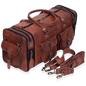 Bolsa de Viagem Masculina Clássica de Couro, C CUERO, Marrom - Branco - Regulável