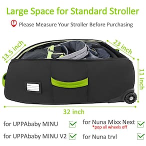 YOREPEK Bolsa de viagem acolchoada com rodas, 2 rodas resistentes para facilitar o transporte. O tamanho total é de 81 cm (C) x 58 cm (L) x 28 cm (A), bem compatível com o carrinho Nuna Mixx Next, também adequado para outros carrinhos padrão/leves. Mas para outros carrinhos, é melhor medir o tamanho antes de comprar. Proteção total de enchimento, forte proteção inferior, a bolsa para carrinho de bebê também inclui uma bolsa interna conveniente para armazenar rodas. Alça acolchoada para facilitar o transporte. Principais características: ? Bolsa de viagem acolchoada com rodas. ? Serve para Nuna Mixx Next, UPPAbaby MINU, Nuna Trvl ? Material resistente à água 900D de alta qualidade ? Zíper com trava - Grande espaço: o tamanho total de uma bolsa de viagem acolchoada com rodas é de 81 cm (C) x 58 cm (L) x 28 cm (A), compatível com YOREPEK Nuna Mixx Next (abre todas as rodas), adequada para Nuna Tavo Next (rodas traseiras destacáveis); Esta bolsa de transporte também é compatível com o carrinho Joovy Kooper, adequada para borboleta Bugaboo, adequada para Babyzen yoyo, and fit Para Nuna Trvl; Dicas: Para outros carrinhos, meça o tamanho antes de comprar; esta bolsa de carrinho de bebê também inclui uma bolsa interna conveniente para armazenar rodas - Proteção total: YOREPEK bolsa acolchoada para carrinho de bebê usa 3 camadas de material premium, incluindo um material resistente à água, uma camada espessa de EPE e um forro interno de alta densidade; além disso, uma alça de fixação interna é adicionada ao grande espaço da bolsa do carrinho para reduzir os danos causados pela agitação - Forte proteção inferior: diferente de outras bolsas de viagem para carrinho, YOREPEK parte inferior da bolsa de carrinho de bebê é feita de couro resistente a arranhões para reduzir danos em terrenos ásperos; a base de borracha pode manter a bolsa do carrinho autossuficiente e não é fácil de despejar no chão, mantendo a bolsa do carrinho limpa - Fácil de transportar: a bolsa para carrinho de bebê com rodas elimina o incômodo da viagem do seu bebê; projetada com rodas lisas, a bolsa para carrinho de bebê torna as viagens no aeroporto sem esforço, enquanto a aderência acolchoada garante que sua mão esteja confortavelmente protegida contra desconforto; quando não estiver em uso, é dobrável e pode ser armazenada praticamente em qualquer lugar - Atraente: compartimento para cartão de nome na lateral da bolsa de carrinho de bebê do avião, você pode colocar seu cartão de nome nela para ajudá-lo a identificar facilmente sua bagagem ao fazer o check-in no portão do aeroporto e do lado de fora; cor viva é adicionada a uma bolsa de verificação preta opaca para o avião para facilitar a identificação da bagagem