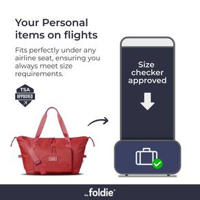 - ? BAGAGEM DE MÃO ADEQUADA PARA AVIÕES: O Foldie foi projetado para atender a todos os requisitos de bagagem de mão das companhias aéreas. Economize seu dinheiro e pare de pagar mais pela bagagem de mão, ela se encaixa perfeitamente no tamanho de item pessoal de 18 x 14 x 8 polegadas da Spirit Airlines & Frontier Airlines. Basta levar sua maleta no próximo voo e colocá-la embaixo do assento à sua frente.