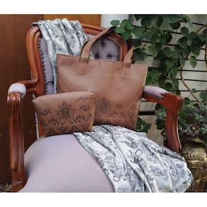 As alças e detalhes da bolsa são feitas em material estampado e resistente que proporciona a durabilidade do produto.
