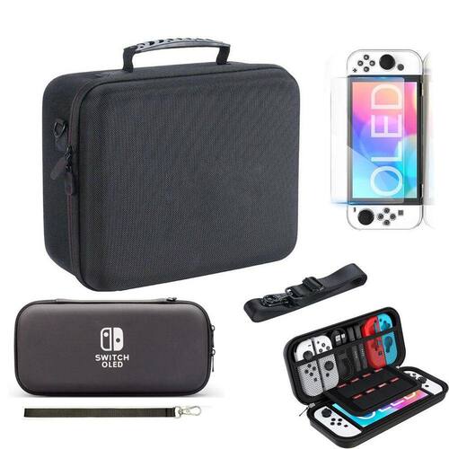 Bolsa e case nintendo switch oled 2 em 1 + película premium Kit contendo: - 1 bolsa grande e 1 bolsa pequena para nintendo switch oled - 1 película de vidro premium como panos de limpeza