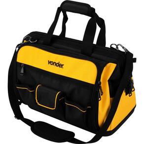 Conteúdo da Embalagem: 1 Bolsa. Confeccionada em lona reforçada com alças acolchoadas e alça de ombro ajustável que adicionam conforto extra ao transportar a bolsa com carga. Com abertura total com zíper duplo, 46 divisões/bolsos, sendo 30 na parte interna, 10 na parte externa e 6 cintos para armazenamento. Possui base plástica rígida e impermeável. Indicada para acondicionamento de ferramentas e acessórios em geral. Modelo:BL 046 Comprimento:430 mm Largura:270 mm Altura:335 mm Material:Lona reforçada Capacidade máxima de carga (kgf):25 kgf Massa aproximada (peso):1,813 kg