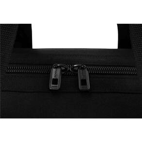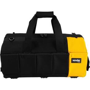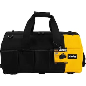 Destaques: Confeccionada em lona reforçada, com reforço metálico na parte superior, alças para transporte reforçadas, zíper duplo reforçado, fundo e laterais com plástico reforçado. Conta com 6 apoios plásticos na base. Possui abertura total e 51 divisões/bolsos, sendo 46 internos e 5 externos.