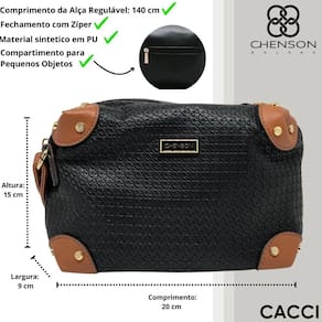Bolsa Feminina Chenson feita em material Poliuretano com seu Fechamento prático e amplo espaço, forro em tecido personalizado. Compartimento para pequenos objetos na area externa e bolso interno. Detalhes na frente com Alça em poliuretano, acabamento em costura contrastante.