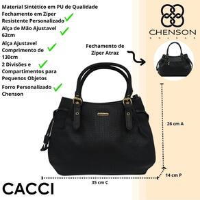 O forro personalizado Chenson reforça o padrão de excelência da marca, proporcionando um toque refinado também no interior da bolsa. Além disso, o fechamento traseiro oferece praticidade extra no dia a dia. Essa é a bolsa perfeita para mulheres que valorizam estilo, conforto e qualidade, compondo looks elegantes e funcionais em qualquer momento.