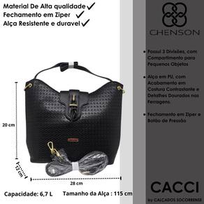 Confeccionada em PU material de excelente qualidade, essa linda bolsa possui amplo espaço compartimento para pequenos objetos. Forro em tecido personalizado com logo Chenson. Fechamento principal com ecler personalizado e botão magnético. Alça em PU com ótimo acabamento em costura contrastante, adicionando um toque de sofisticação, com seus detalhes das ferragens em dourado.