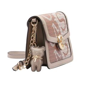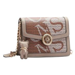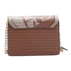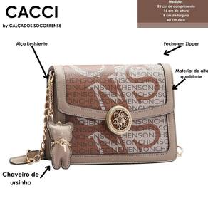 Bolsa Feminina Chenson Pequena Max Logo Transversal 3484170 PVC Fechamento com fechamento e botão magnético forro em tecido personalizado compartimento para pequenos objetos 2 divisões detalhe na frontal dourado com design de uma flor e pedrarias Alça em PVC com detalhe acorrentado acabamento em costura contrastante acompanha Chaveiro Ursinho Chenson removivél