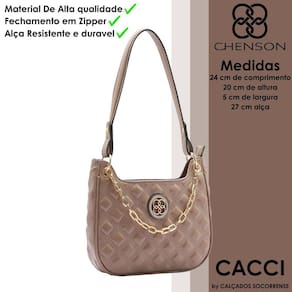 Bolsa Feminina Chenson Matelassê Contemporâneo Ombro 3484253 PVC Fechamento forro em tecido personalizado compartimento para pequenos objetos bolso interno detalhe frontal logo chenson dourado com pedrarias Alça em poliuretano acabamento em costura contrastante