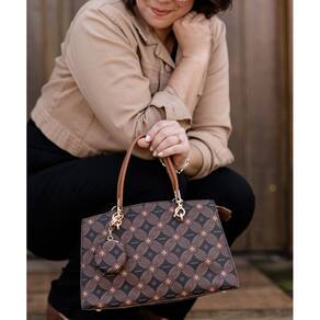Bolsa sofisticada com design estruturado e estampa geométrica exclusiva. Oferece amplo espaço interno e excelente organização, sendo ideal para ocasiões profissionais ou sociais com elegância e praticidade.