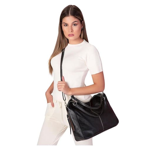 Uma bolsa com o couro macio para proporcionar mais conforto no dia-a-dia, prática, confortável e grande.Características:- Couro;- Alça em Couro ( Comprimento 39/40 cm);- Alça Ajustável Removível ( Comprimento 147/150 cm )- 1 Bolso Interno com Fechamento em Zíper ( Largura 15/16 cm);- 1 Bolso Interno Aberto ( Largura 15/16 cm);- 1 Bolso Traseiro Aberto ( A 16 x L 12,5 cm);- 2 bolsos Laterais Externos (um em cada lado) - Forrada;- Costuras Reforçadas;- Confeccionada de Forma Artesanal.Dimensões: 36 cm de Altura x 35/36 cm de Largura x 13,5/14 cm de Profundidade.