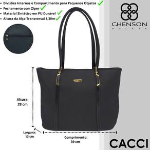 Produzida em PU de alta qualidade, essa bolsa é a combinação perfeita de estilo e funcionalidade. Seu design espaçoso oferece praticidade, enquanto os compartimentos internos garantem organização para pequenos objetos. O forro em tecido personalizado com o logo Chenson traz um toque de exclusividade ao modelo. O fechamento principal foi pensado para proporcionar segurança e elegância, enquanto a alça em PU, com acabamento refinado em costura contrastante, acrescenta ainda mais sofisticação. Os detalhes em ferragens douradas completam o visual, tornando essa bolsa um acessório indispensável para qualquer ocasião.