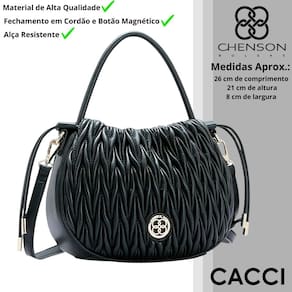 Bolsa Feminina Chenson Linha Fashion Matelassê Mão 3484500 Poliuretano, fechamento com cordão e botão magnético, forro em tecido personalizado, compartimento para pequenos objetos, amplo espaço, detalhes na frente, alça de poliuretano, acabamento em costura contrastante.