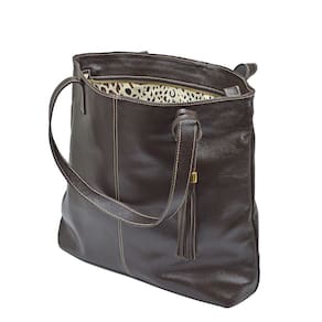 Lindíssima e moderna bolsa de ombro modelo SHOPPING BAG, em couro, com excelente espaço interno, alça confortável, muito prática e fácil de usar, ideal para o dia a dia ou em produções casuais que necessitem de estilo sem abrir mão da elegância. Na parte frontal possui um lindo enfeite com franjas do mesmo couro para dar um charme na sua linda bolsa. Todos os metais são na cor dourada para combinar com a sofisticação e elegância que um produto em couro merece. O acabamento interno é feito com forro de cetim com texturas variadas tipo animal print (padrão oncinha) ou similar, possui um bolsinho interno fechado por zíper de nylon e outros dois abertos para pequenos objetos e celular. O fechamento da parte superior é feito com zíper de metal dourado e na parte externa traseira possui mais um bolso extra fechado por zíper, também em metal dourado, para carregar pequenos objetos.