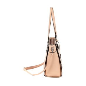 A Bolsa Luxcel Tote Feminina BG72716é espaçosa e de formato retangular, ideal para o dia a dia. Fabricada em material sintético de alta qualidade, oferece durabilidade e resistência. Possui um compartimento principal amplo com fechamento em zíper, garantindo a segurança dos itens armazenados. Internamente, conta com um forro de tecido macio e bolsos organizadores, sendo um com zíper para pequenos objetos. As alças são finas duplas, proporcionando conforto ao carregar. Externamente, a bolsa apresenta detalhes decorativos sutis, como pespontos contrastantes e um discreto logotipo da marca.