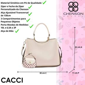 Elegante e funcional, esta bolsa é perfeita para quem busca sofisticação e praticidade no dia a dia. Confeccionada em PU de alta qualidade, conta com três compartimentos ideais para pequenos objetos, proporcionando organização impecável. Seu forro em tecido personalizado com o logo Chenson reforça a exclusividade do modelo, enquanto o fechamento principal em fechamento ecler personalizado e botão magnético garante segurança.