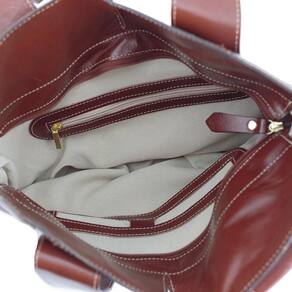 É feita à mão, possui acabamentos em dois tons de couro ,conferindo um visual sofisticado e elegante que pode ser em diversas combinações de looks. O bolso com zíper na parte de trás é ideal para guardar chaves e carteiras de forma discreta e prática. Cor: Whisky Alças: 2 fixas para ombro. Bolsos internos: 2 pequenos sem fechamento e 1 com fechamento em zíper. Bolsos externos: 1 com zíper na parte de trás. Divisórias: Não. Material: Couro . Medidas: Altura 33 cm, Largura 39 cm e Peso 600gr. Marca: Não Informado