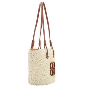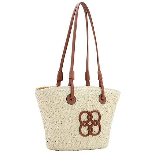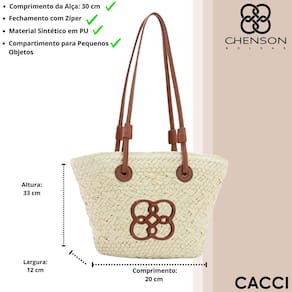 Bolsa Feminina Chenson Linha Palha Ombro Poliuretano fechamento com zíper forro em tecido personalizado compartimento para pequenos objetos Amplo espaço Logo Chenson em Madeira alça poliuretano acabamento em costura contrastante