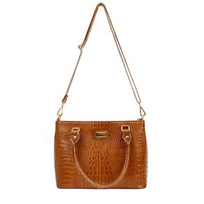 MATERIAIS: Couro origem bovina com textura croco Metais (fechos, argolas, rebites, etc) com banho dourado e antioxidante Zíperes de metal na cor do produto Costura na cor do couro Forro com textura tipo animal print (oncinha), floral ou similar.
