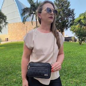 Diferente das bolsas grandes e pesadas, a bolsa feminina pequena transversal é leve e prática. Apesar do tamanho reduzido, ela acomoda tudo o que você precisa para o dia a dia, cabe celular, chaves, batom e até o óculos de sol. Possui um bolso externo e também um bolso interno de zíper – ideal para levar dinheiro, cartão e moedas. Cabem todos os itens essenciais para você se sentir segura e pronta para qualquer desafio.