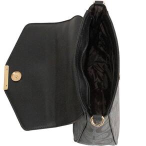 A Bolsa Feminina Transversal Fuseco é confeccionada em Poliuretano com acabamento em costura, forro interno em poliéster, ferragens metalizadas, bolso externo, fechamento principal por botão de pressão e zíper, bolso interno e alça transversal removível.
