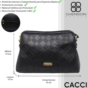 O forro em tecido personalizado com o logo Chenson confere um toque de exclusividade e requinte ao acabamento interno. O fechamento principal em ecler personalizado proporciona mais segurança e praticidade no dia a dia.