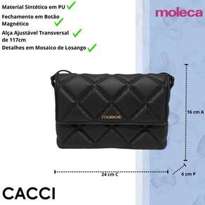 Com a Bolsa Feminina Transversal de Ombro Moleca, você tem a combinação perfeita de estilo e funcionalidade! Seu design moderno e elegante, aliado a detalhes sofisticados, garante o toque ideal para complementar qualquer look, seja no dia a dia ou em ocasiões especiais. Compacta e prática, ela se adapta à rotina acelerada, trazendo praticidade e beleza aonde quer que você vá.