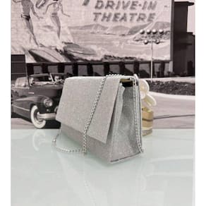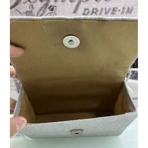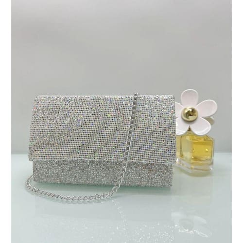 Bolsa Feminino Carteira Bolsinha de Mão com Corrente Transversal e Ombro Brilhosa Glitter para Festa Casamento Presente - Prata - P