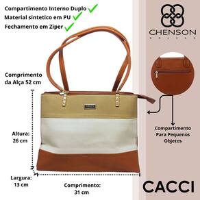 Esta bolsa da linha Clássico da Chenson combina estilo moderno com funcionalidade. Confeccionada em material sintético (PU) de alta qualidade, ela possui fechamento com ecler, garantindo segurança e praticidade no uso diário. Suas duas divisões internas facilitam a organização dos seus pertences, enquanto os detalhes frontais em agregam um toque de sofisticação. A alça em PU oferece conforto, e o compartimento especial para pequenos objetos mantém tudo em ordem, ideal para qualquer ocasião.